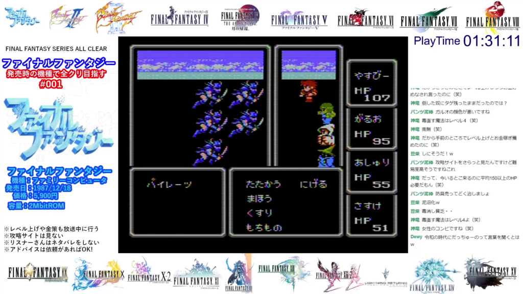 今回は「ファイナルファンタジー全クリアを目指して#FF1-1」です。
